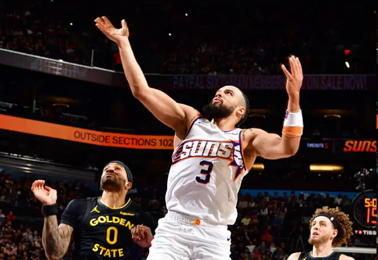 到了第三节,勇士只得到17分,但是太阳的得分也不高,只得到27分,太阳带着6分的领先优势来到末节。在第四节,原本太阳占据着比赛的主动,甚至一度在比赛还剩下7分钟的时候一度领先对手11分。但是在最后7分钟,太阳进攻突然断电,球队只得到两分,勇士打出一波15-2的攻击波,最后时刻,桑托斯拿球反击一条龙反超太阳,最终在库里缺阵的情况下拿下比赛胜利。